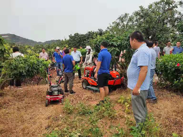 培训会上,南宁市三禾园林机械有限公司技术员和大疆无人机厂家技术员进行理论和操作培训,在室内培训时介绍了水果机械化前沿知识,各种水果机械机具性能、特点和安全操作要领。现场培训包括中耕培土施肥机、除草机、果枝修剪机、轨道运输机、无人机植保喷药等多种水果机械机具进行操作演示活动。