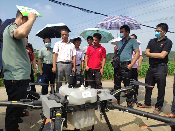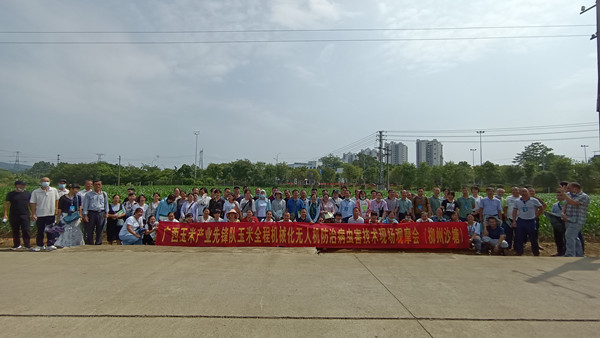 为配合2021年广西基层农技推广体系人员(玉米)培训班教学实践任务完成,9月8日上午,全程机械化无人机防治玉米病虫害现场观摩会在市农科中心举行。我中心副所长覃耀冠同志、粮油作物研究所玉米课题组全体成员参加。