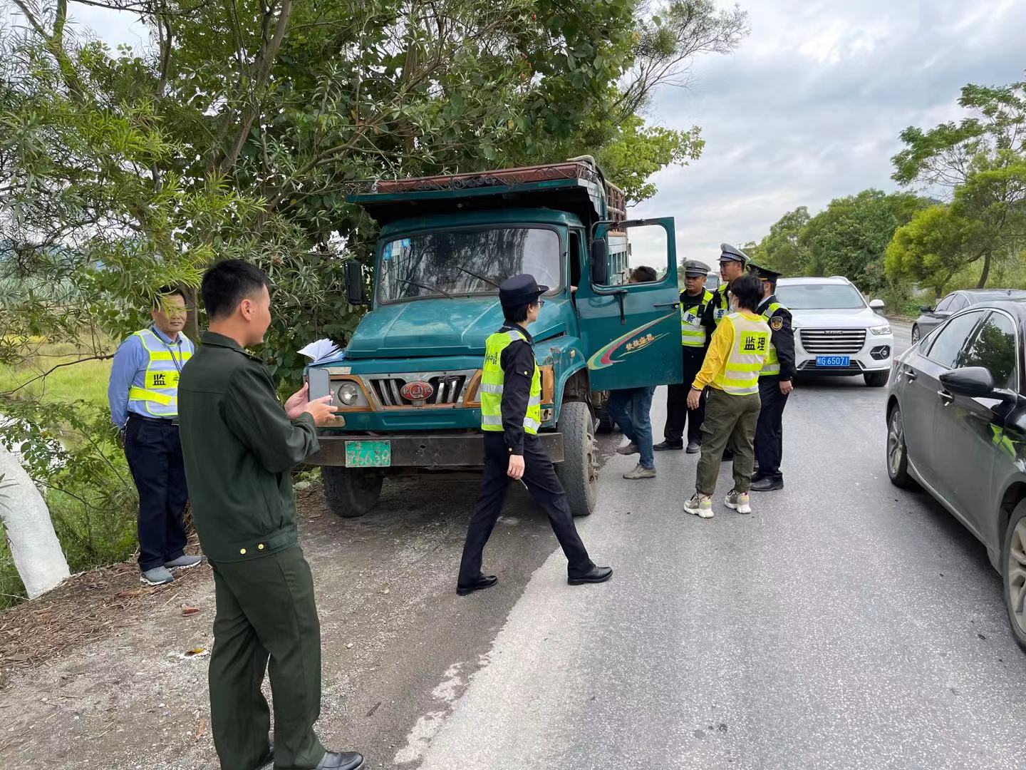 2021年10月15日忻城县农业综合行政执法大队联合合山市农业综合行政执法大队在重点路段开展农用拖拉机道路交通安全隐患大排查大整治执法检查。