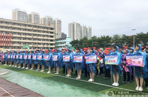 各市参赛代表队、裁判员、监督员方阵。广西新闻网见习记者 杨思悦 摄