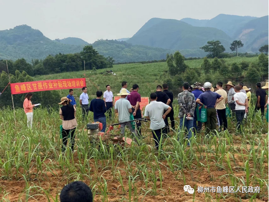 为加快推进鱼峰区糖料蔗生产机械化作业补贴政策的落实,5月19日,区农业农村局、白沙镇人民政府、凤糖集团白沙有限公司在鱼峰区白沙镇新安双高基地联合举办鱼峰区甘蔗生产全程机械化作业补贴现场培训会。白沙镇甘蔗种植大户代表、拖拉机机手、各村党支部书记、两镇分管领导及业务骨干、区农业农村局等共计70余人。现场会上,鱼峰区农业农村局、白沙镇政府业务骨干现场培训拖拉机手安装远程监控系统终端中华农机APP后,利用终端进行甘蔗作业中耕培土演示,把有效作业数据推送到广西农机信息化平台,让作业主体享受作业补贴政策。同时用无人机演示甘蔗植保机械化作业。