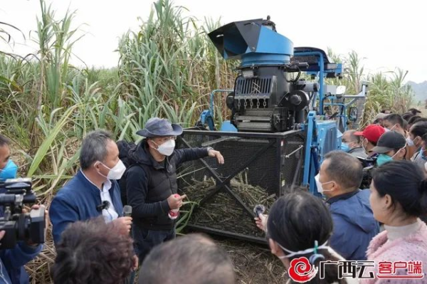 2021年以来,广西把提高甘蔗生产全程机械化工作重点,由单纯推广联合机收作业向多种作业模式并重转变,提高丘陵山区、小地块蔗地机收水平,大力破解甘蔗机收率低的瓶颈问题。截至目前,已有10余家区内外农机生产企业,研制割铺机、割堆机、集运机、除杂设备等30多款分步式收获装备和3款适宜丘陵山区作业小型智能化甘蔗联合收获机。