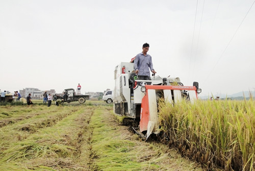 连日来,持续的阴雨天气严重影响了田阳县中稻的收割进度,9月1日,难得降雨停歇太阳露脸,这可忙坏了农民朋友。笔者在田阳县那坡镇六合村的田头里看到,没收割完的田地里几乎都有劳作的身影,数十台联合收割机齐上连,不一会儿,大片金黄色的稻田已经被“剃”了头。六合村的村民说,因为一直是阴雨天,中稻收割给耽搁了,要不然早在一周前就该收完了,看天气预报,明后天还会有雨,因此抓住今天的降雨间歇,抓紧请联合收割机来收割了。