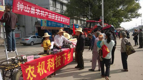 近日,贺州市农机技术推广站派出技术人员深入钟山县公安镇开展农机科技下乡活动,大力宣传农机新技术新机具,普及应用农机先进科技成果,通过在乡村重要路口利用横幅、标语、传单、展板等形式广泛宣传农机化新科技,对前来参加活动的农户,农机技术人员现场进行农机产品的展示及注意事项,并指导农机具的使用、检修以及保养方法。此次活动得到了县农机局和当地政府领导的支持和亲临现场指导,参加活动的群众有100多人次,发放科技宣传资料500多份,取得了较好的宣传效果。
