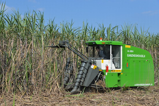 日前,江州区农机局引进的日本松元切断式小型联合收割机、中联重机AS60型切断式联合收割机、美国凯斯7000型联合收割机等都备受蔗农青睐。昨日,一款由山东青州市精益液压机械有限公司生产的4GL-1型ZGS整杆式甘蔗联合收割机在罗白乡为甘蔗种植大户服务。江州区农机局部门领导及蔗农代表零距离地感受了这款整杆式甘蔗联合收割机的良好性能与工作效率。