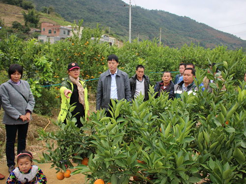 学习组一行先后到西林县那劳镇的宫保府贡柑基地和桂洁公司柑桔基地实地参观学习。每到一处,学习组成员都认真听取该县农业局水果办黄茂景主任和基地老板的介绍,并主动询问技术要点、注意事项等等,或用笔或用相机认真记录可借鉴的地方,同时实地察看走访,进行经验交流。