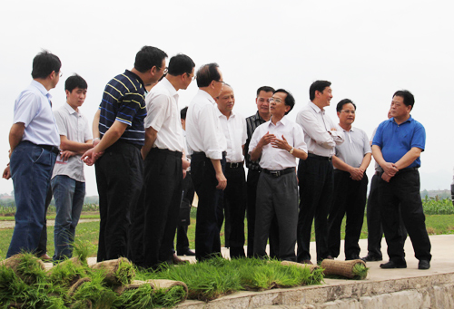 危朝安副书记十分关心粮食生产安全,机插现场,他观看了高速乘座式插秧机作业情况,向现场有关人员详细了解插秧机厂家、机插行距、株距、株数及超级稻种植等情况,并拿起一盘无土基质秧块,体会秧块重量,仔细观看秧苗长势。