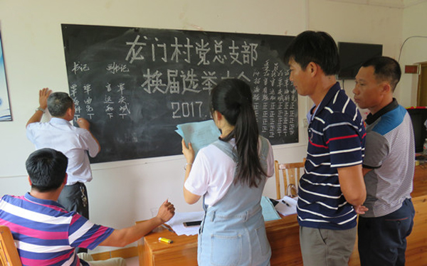 会议由上届总支部书记覃海科主持,会议听取和审议了龙门村党总支部委员会工作报告;通过《 象州镇龙门村党支部党员大会选举办法》;推选并通过总监票员、监票员、总计票员、计票员名单;酝酿通过新一届龙门村党总支部委员会委员候选人名单;最后选举产生了新一届龙门村党总支部委员会委员为覃海科、官运和、覃曲先、覃庆斌、官有强等五名同志,覃海科当选为新一届党总支部书记。