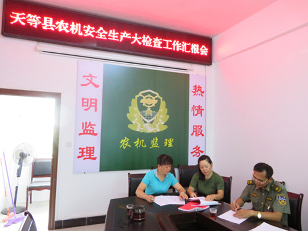 8月15日,崇左市农机安全监理所深入天等县督导农机安全生产大检查工作。督导以听取汇报、查阅台账和实地督导方式进行。督导组对天等县贯彻落实崇左市农机局《关于开展全市农机安全生产大检查的通知》(崇农机办〔2017〕85号)和《天等县安委会关于印发全县安全生产大检查实施方案的通知》(天安委〔2017〕31号)精神措施和取得的工作成效表示充分肯定,同时要求天等县进一步加大工作力度,深化当前农机安全生产大检查工作,及时消除农机安全隐患,有效遏制重特大农机事故的发生,为党的十九大胜利召开营造良好的农机安全生产环境。