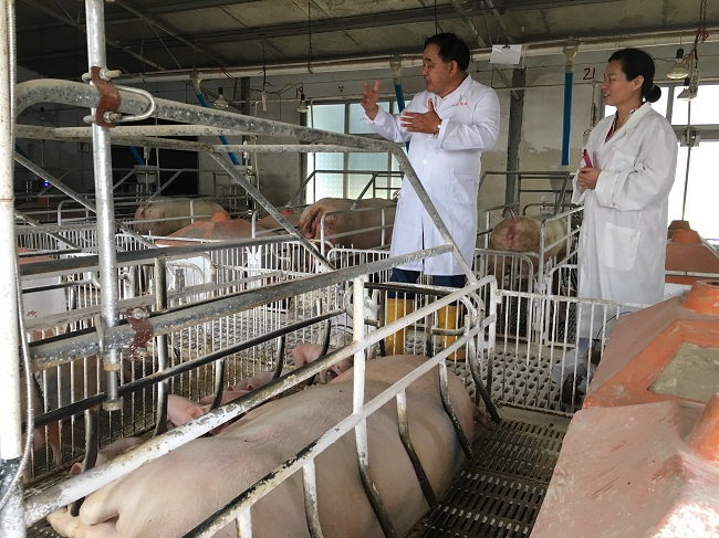 玉林市农机局局长林霞到生猪养殖企业调研