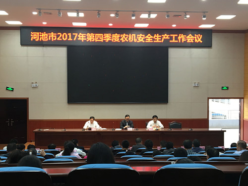 11月11日,河池市农机局在宜州区召开2017年全市第四季度农机安全生产工作会议。出席会议的有全市11个县(区)农机局主要领导,监理站负责人及河池市农机局领导班子以及局属二层机构领导及局、所中层领导参加了会议,肖小明副局长、李求让局长在会上作专题发言。