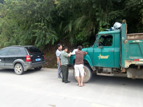上图为田林县农机局农机安全监理人员上路抓汛期农机安全生产整治教育工作