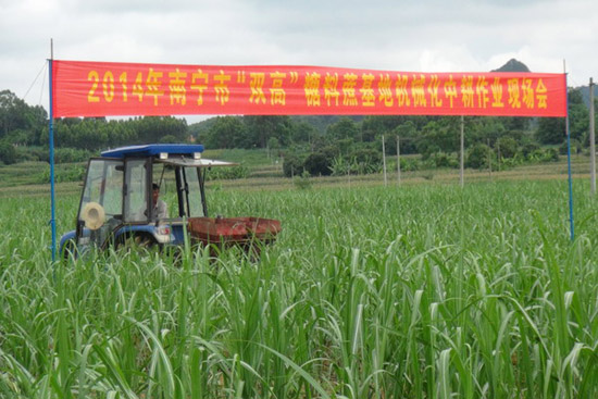 6月17日上午,南宁市在武鸣县城厢镇香山糖厂基地举行“双高”糖料蔗基地机械化中耕作业现场会。会议分现场观摩和室内会议两个阶段进行。