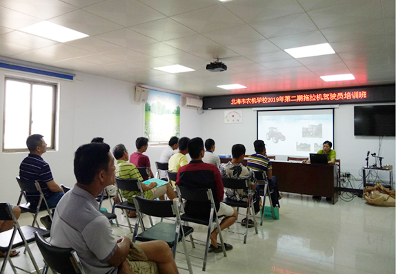 近日,北海市农机学校在福成镇宁海村委举办2019年第二期拖拉机驾驶员培训班,10名学员完成科目一(理论)培训。