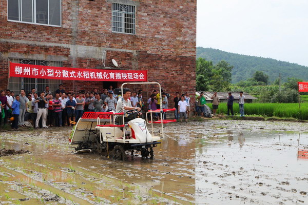 为全面推进全市水稻生产全程机械化进程,7月4日,柳州市小型分散式水稻机械化育插秧现场会在融安县潭头乡召开。会上融安县农机推广技术人员重点介绍小型分散式水稻机械化育插秧的实施经验和技术流程。来自全市6县4城区农机管理及推广部门、农机合作社、种粮大户以及五菱柳机插秧机生产厂家等共计150多人到会观摩,特别是融安县农机部门实施的“集中育秧,分散管理”水稻育插秧轻简化这一模式受到与会人员的赞扬和充分肯定。