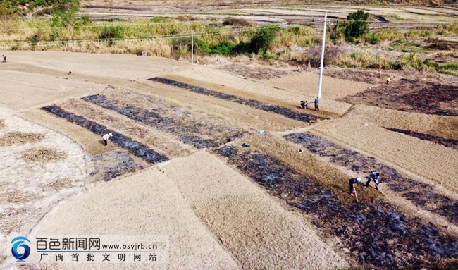 当天,右江区永乐镇百练村的群众抢抓好天气纷纷到自家的田地开展春耕生产。
