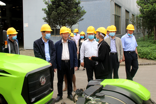 杨斌、欧余军一行首先参观了惠来宝公司生产车间,了解该公司技术创新成果——模块化多用途农业装备产品。模块化多用途农业装备通过动力主模块、功能模块、属具模块的灵活快速组合实现不同的作业功能,满足一机多用、提高机器利用率。据了解,惠来宝公司主要生产拖拉机、复杂路况运输装备、专用汽车、甘蔗收获机械、船用机械等产品,年产能力可达10000台套以上,是广西农用机械主要的生产基地,年销量位列广西同行业前茅。目前,该公司生产的惠利牌504型轮式拖拉机和7YGS-11型甘蔗田间收集搬运机已进入农机购置补贴产品目录。