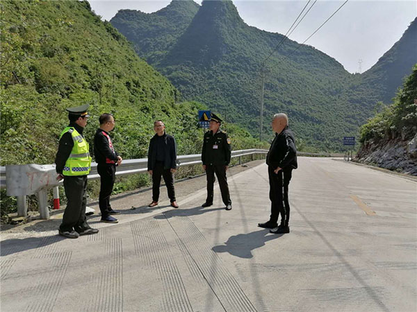 胡金成陪同李剑鸿副区长带领监理站执法人员、大埠乡农服中心人员在大埠乡长流水等重要路段开展农机安全生产检查