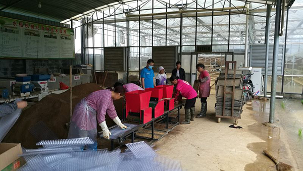 近日,自治区农机中心引入中国农业大学研发的水稻大钵体毯状苗机械化育插秧新技术在广西兴安县、港北区两地开展试验示范。5月11日,中国农业大学教授宋建成亲临广西兴安县指导育秧。