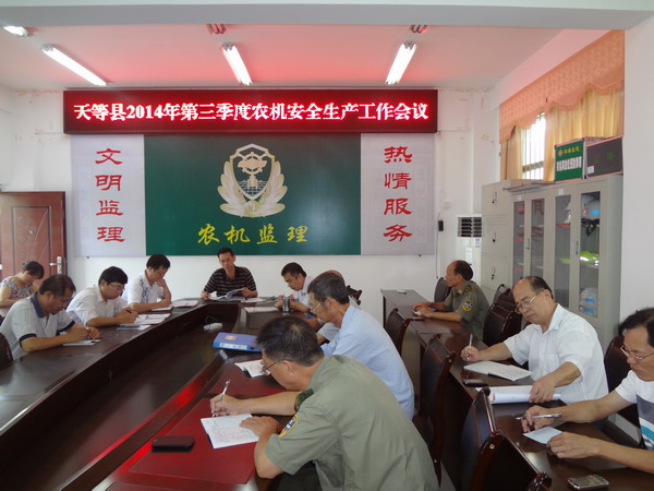 为确保2014年第三季度农机安全生产工作的正常开展并取得实效,天等县农机局于7月14日组织召开2014年第三季度农机安全生产工作会议,县农机局李永锋局长在会上就如何开展本季度农机安全生产工作进行动员部署。会议强调“三夏”农机安全生产工作的重要性、紧迫性,要求全体干部职工进一步增强工作责任感、紧迫感和忧患意识,凝心聚力地把“三夏”农机安全生产工作抓紧抓好抓实,及时把农机安全隐患消灭于萌芽状态,确保农机安全生产,实现安全生产和经济效益双赢。