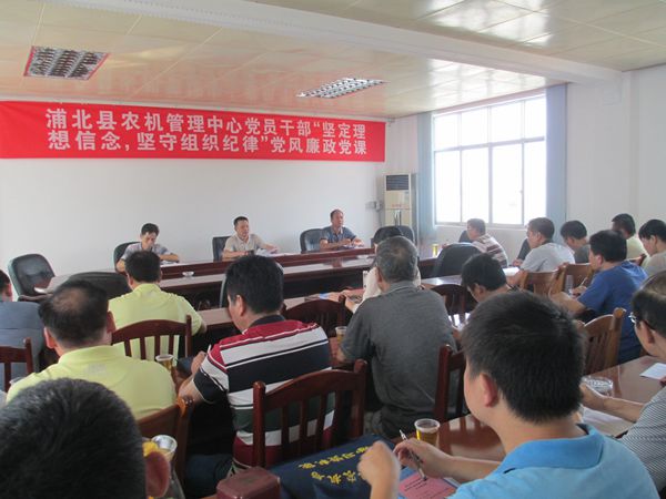 为深入贯彻落实十八届中纪委三次会议、自治区十届纪委五次全会精神,落实上级纪检监察机关的工作部署,9月24日,浦北县农机局举办了“坚定理想信念,坚守组织纪律”党风廉政主题党课,党课由局长符远琼主讲。局全体干部职工和退休党员共50多人参加会议。