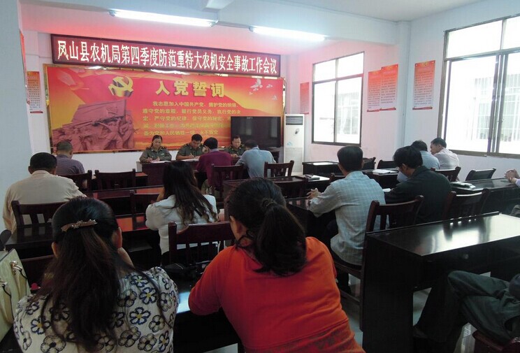 2014年10月22日上午,凤山县召开第四季度防范重特大农机安全事故工作会议。会议全面围绕防范重特大农机安全事故工作会议精神,动员全县上下紧急行动起来,汲取教训,举一反三,采取更扎实、更有效的措施,全力以赴抓好第四季度农机安全生产工作,坚决遏制重特大农机事故的发生。